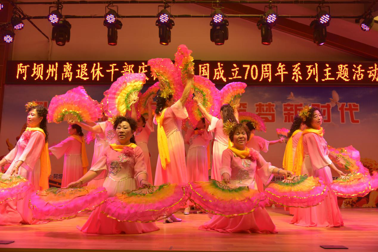 9月19日,在即将迎来新中国成立70周年之际,四川阿坝州委老干部局在阿坝州都江堰老干部管理服务中心开展了老干部系统“礼赞新中国、筑梦新时代”庆祝中华人民共和国成立70周年系列主题活动。省委老干部局二级巡视员刘亚冰出席活动并讲话,州委组织部、州委宣传部、州人力资源和社会保障局及州广播电视台主要领导莅临活动现场。全州离退休老同志代表、各涉老组织、州直属干休所和各县老干部局负责人、13县老年艺木队共600余人参加庆祝活动。