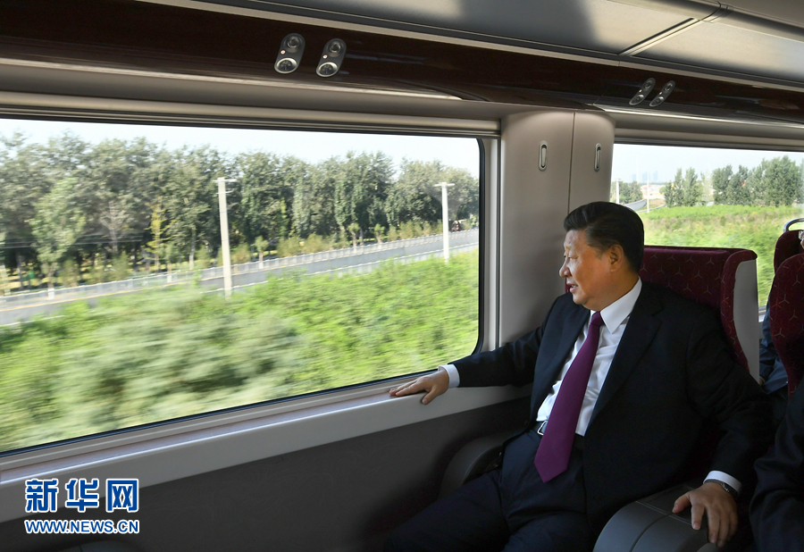 9月25日上午,北京大兴国际机场投运仪式在北京举行。中共中央总书记、国家主席、中央军委主席习近平出席仪式,宣布机场正式投运并巡览航站楼。这是习近平乘坐轨道列车前往北京大兴国际机场。 新华社记者 谢环驰 摄