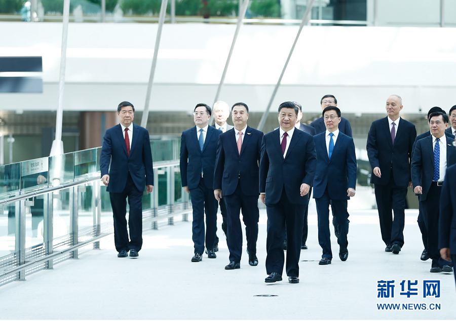 大兴机场航站楼,是目前全球最大规模的单体航站楼,以其独特的造型设计、精湛的施工工艺、便捷的交通组织、先进的技术应用,创造了许多世界之最。航站楼里,流线型的空间结构十分宽敞明亮。习近平步行巡览站台大厅和值机大厅,实地了解值机、安检、登机和残疾人无障碍设施等情况,并结合沙盘和模型听取机场总体规划、设施建设等介绍。习近平强调,大兴国际机场是首都的重大标志性工程,是推动京津冀协同发展的骨干工程。京津冀三地要抓住机遇加强协同合作,加快推动地区高质量发展。民航业是国家重要的战略产业。要建设更多更先进的航空枢纽、更完善的综合交通运输系统,加快建设交通强国。