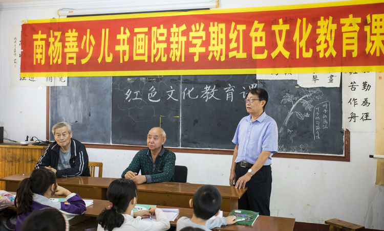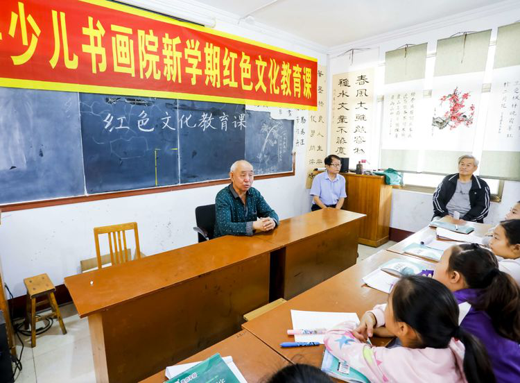 临朐县老干部书画研究会党总支书记、会长赵洪海为同学们上了一堂生动的红色文化教育课。