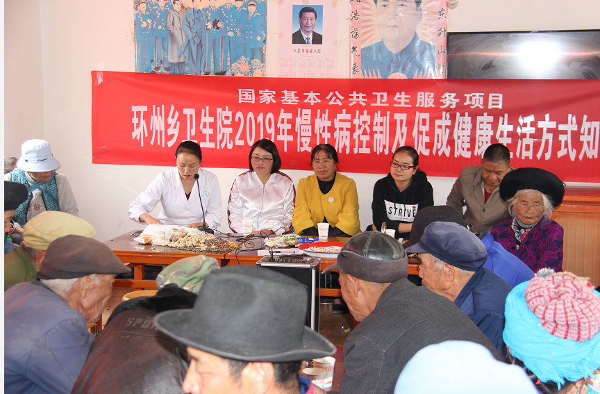 三是开展一次健康知识讲座。为进一步关爱老年人身体健康,普及老年人健康保健知识,提高老年人的生活质量,共享健康快乐的生活。2019年10月7日,环州乡卫生院以老年人常见的高血压、冠心病、脑梗以及糖尿病的防治为主要宣讲内容,重点向大家传授老年人常见疾病的预防和治疗方法。向老年人详细介绍了健康新理念,引导老人平时自觉养成健康的生活和饮食习惯, 教授老人做好日常自我防护,对老年痴呆等老年病做到早发现、早诊断、早预防、早治疗。整堂讲座深入浅出,让科学健康理念深入人心。