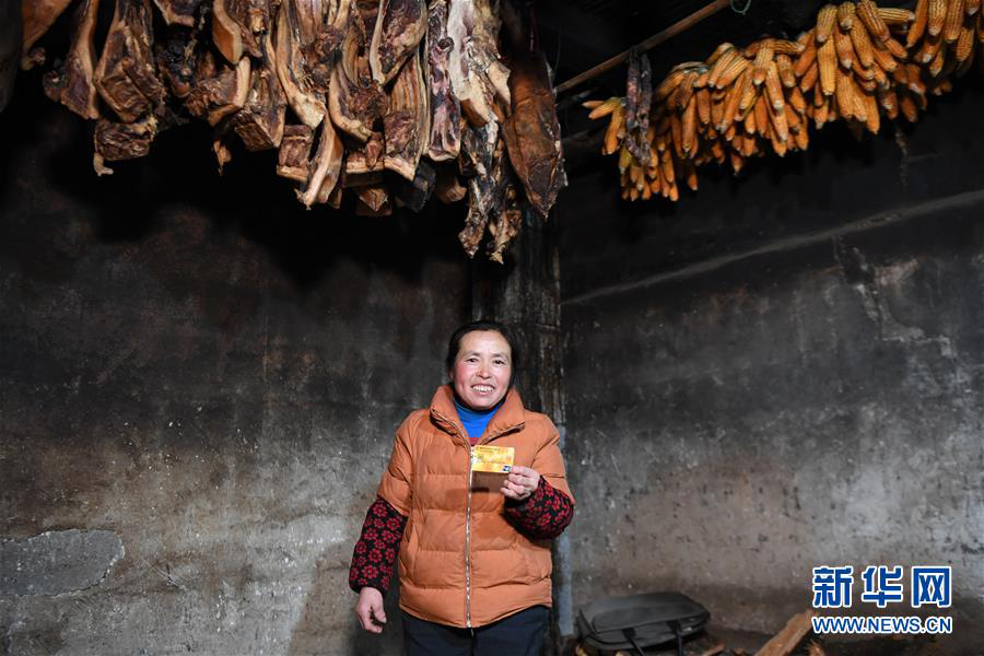 湖南龙山县翻身村村民李红云在展示自家的储蓄卡(3月10日摄)。新华社记者 薛宇舸 摄