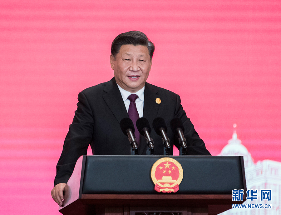 11月4日晚,国家主席习近平和夫人彭丽媛在上海和平饭店举行宴会,欢迎出席第二届中国国际进口博览会的各国贵宾。这是习近平发表致辞。 新华社记者 王晔 摄