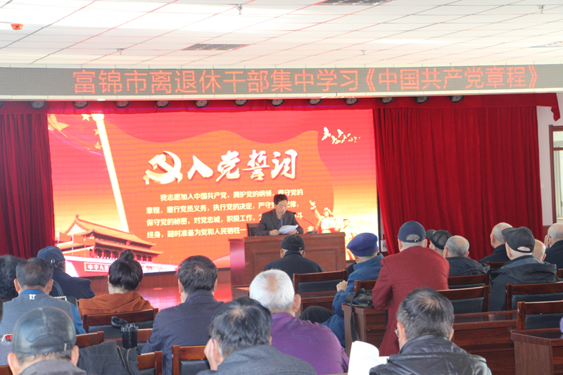 为推进“不忘初心 牢记使命”主题教育深入开展,进一步增强广大离退休党员干部的理论水平和政治觉悟,近日,黑龙江佳木斯富锦市离退休干部党工委采取“四个一”措施组织离退休干部党支部书记、党员干部集中学习《党章》。