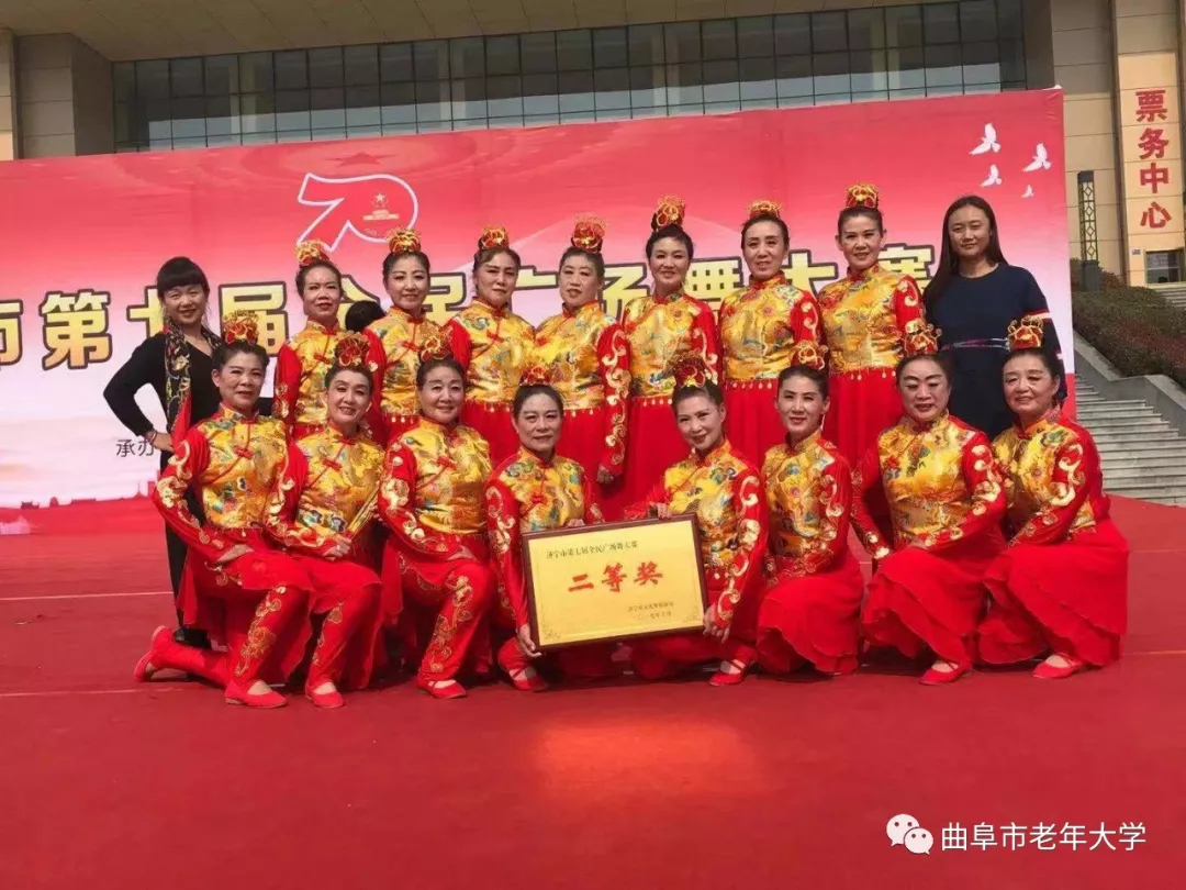 2019年10月30日,一块沉甸甸、金灿灿的奖牌被送到了学校办公室,上面赫然写着:山东济宁曲阜市老年大学艺术团被中共山东省委老干部局、中共山东省委离退休干部工委授予“全省优秀老干部