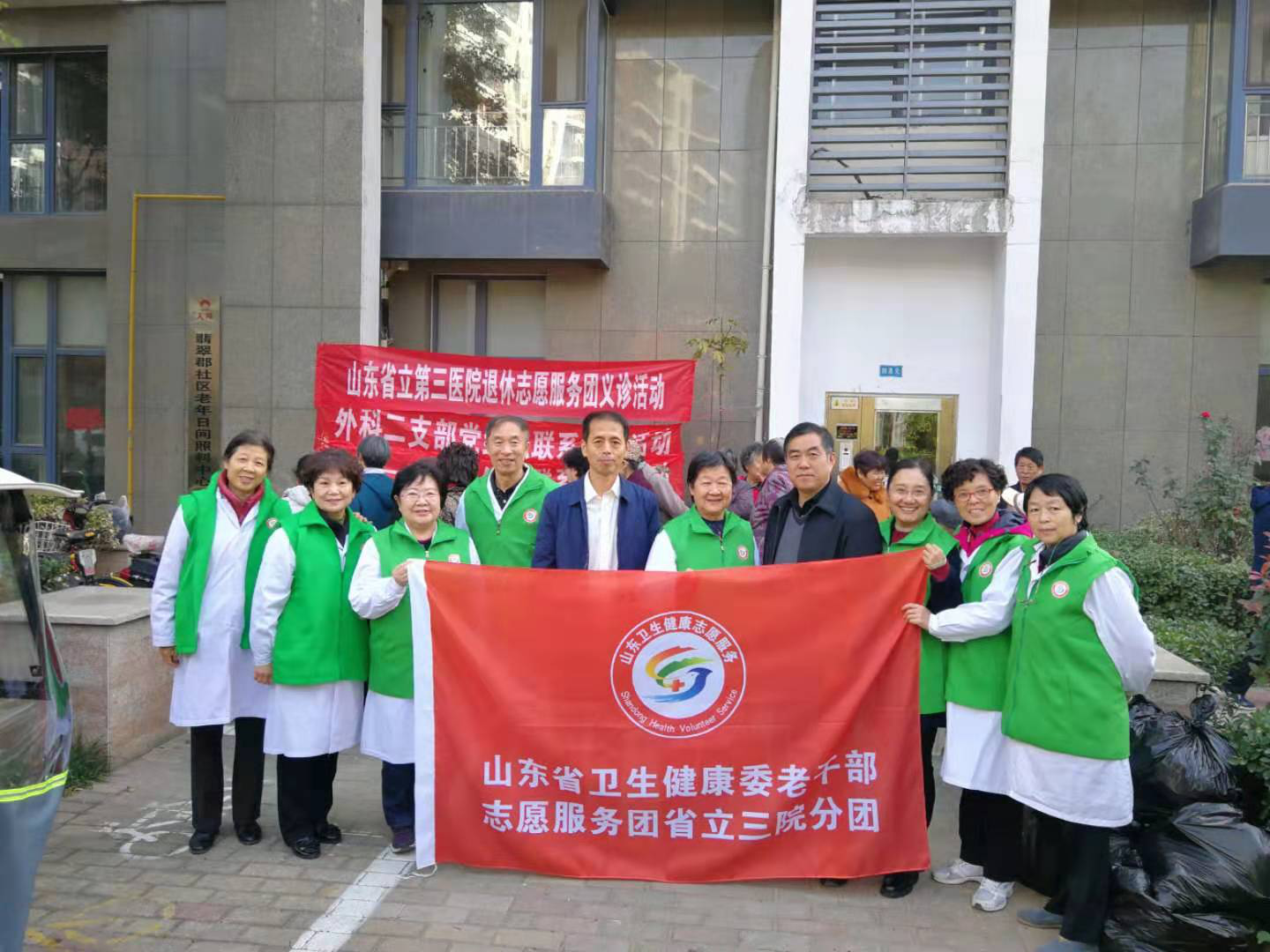 11月15日上午,山东省卫生健康委老干部志愿服务团省立三院分团共计20余人来到对口联系点济南市天桥区翡翠郡社区开展义诊活动,为社区居民提供预防流感知识讲座、免费义诊、健康咨询等一系列便民服务。省卫生健康委离退休干部处处长、老干部志愿服务团副团长单既有还给省立三院分团授了团旗。