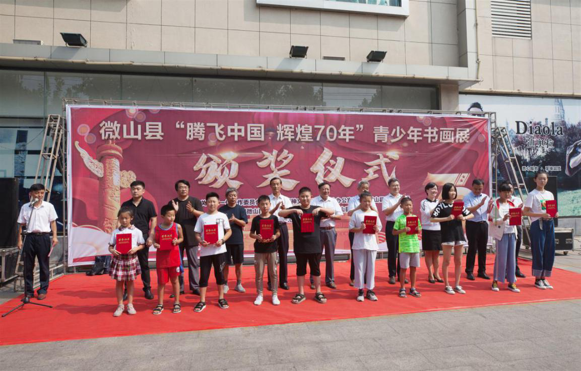 为庆祝中华人民共和国成立70周年,推动全县关心下一代工作和青少年才艺培养活动深入开展,激发广大青少年创作热情,展现青少年良好精神风貌,近日,济宁市微山县关工委、县文明办、县委老干部局、团县委、县教育和体育局等单位联合举办了微山县“腾飞中国 辉煌70年”庆祝中华人民共和国成立70周年青少年书画展活动。