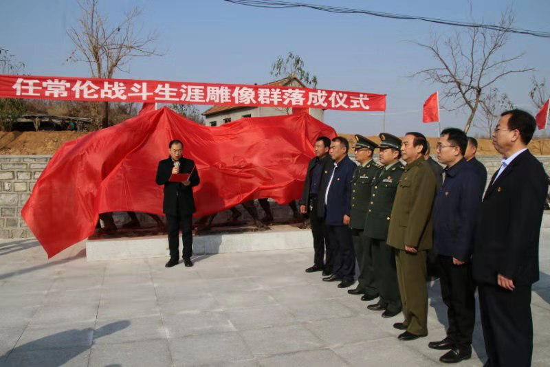 上午10时,目光转向任常伦纪念广场,豪迈而悲壮的乐声响起,一场庄严肃穆的任常伦战斗生涯雕像群落成揭幕仪式在这里举行。红色幕布褪去,“不忘初心”“苦练杀敌本领”“冲锋在头阵”“参加群英会”“学习文化”五组抗日英雄群体雕塑缓缓呈现,坚毅的脸庞,执着的神情,仿佛向后人们昭示着那一段前赴后继、英勇抗敌的艰苦岁月,生动再现了任常伦烈士在人民军队成长的英雄轨迹。全体人员面向革命烈士雕像三鞠躬,深切缅怀革命先烈们的丰功伟绩,寄托对他们的深切哀思。