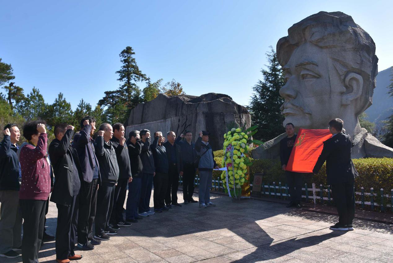 上午8时30分,老干部们驱车直接赶赴“全国爱国主义教育基地”怀玉山。一下车便登山向方志敏塑像敬献了花篮,原上饶市委副书记、市纪委书记洪炳华上前整理晚联,老干部们在方志敏塑像前默哀并行三鞠躬礼,共同缅怀革命先烈。在方志敏塑像前,市纪委离退休干部党支部还组织全体老党员面对党旗重温了入党誓词。在红军北上抗日先遣队纪念碑前,由讲解员带领参观回顾了北上抗日先遣队的战斗历程,进一步接受了革命先辈舍生忘死、浴血奋战的精神洗礼。随后参观了红军北上抗日先遣队纪念馆,一组组珍贵的图片、一件件朴实的实物、一本本当年的书籍,生动地展示了以方志敏为代表的革命先烈,在赣东北这块红土地上不怕牺牲、谋求胜利的可歌可泣的革命斗争史。通过实地参观,老干部们进一步感悟了方志敏“爱国、创造、清贫、奉献”伟大精神和坚定了“不忘初心,牢记使命”争做新时代合格党员的意志。