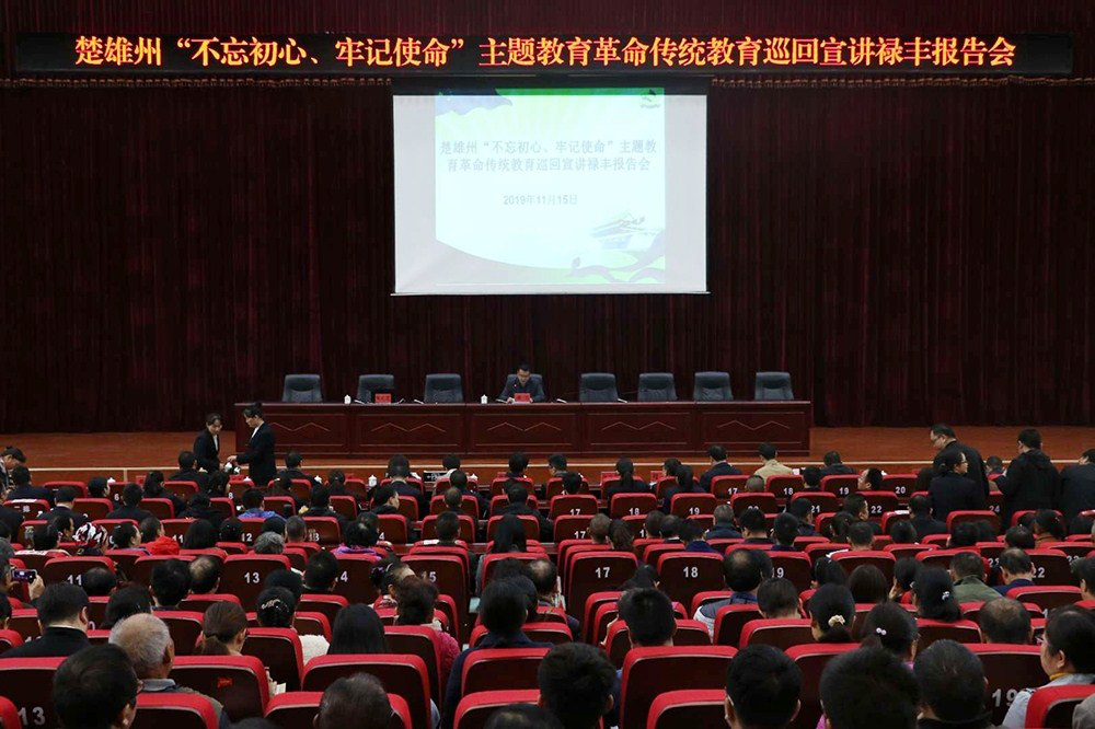 2019年11月15日上午,云南楚雄州“不忘初心、牢记使命”主题教育革命传统教育巡回宣讲禄丰报告会在禄丰县委党校举行。禄丰县委、县人大、县人民政府、县政协领导,县级各部门副科以上领导干部、离退休干部共458人参加报告会。省委老干部局副局长杜少波、省委老干部局退休干部处副处长苏中菊、州委老干部局副局长习刚等省州领导到会指导。