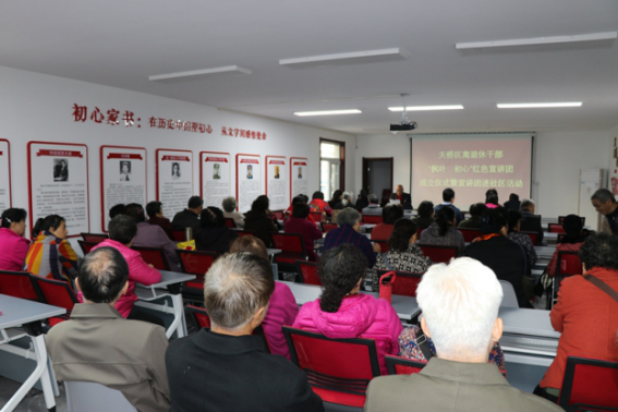 成立“枫叶初心”离退休干部红色宣讲团,来自南村、制锦市街道的黑松江、石兰英等6位宣讲团成员,面向机关单位、街道社区开展巡回宣讲,用鲜活生动的事例,感人肺腑的故事,讲述自己退休后仍然坚持自觉学习、积极参与社区志愿的故事,展现老党员“退休不褪色”的奉献精神。