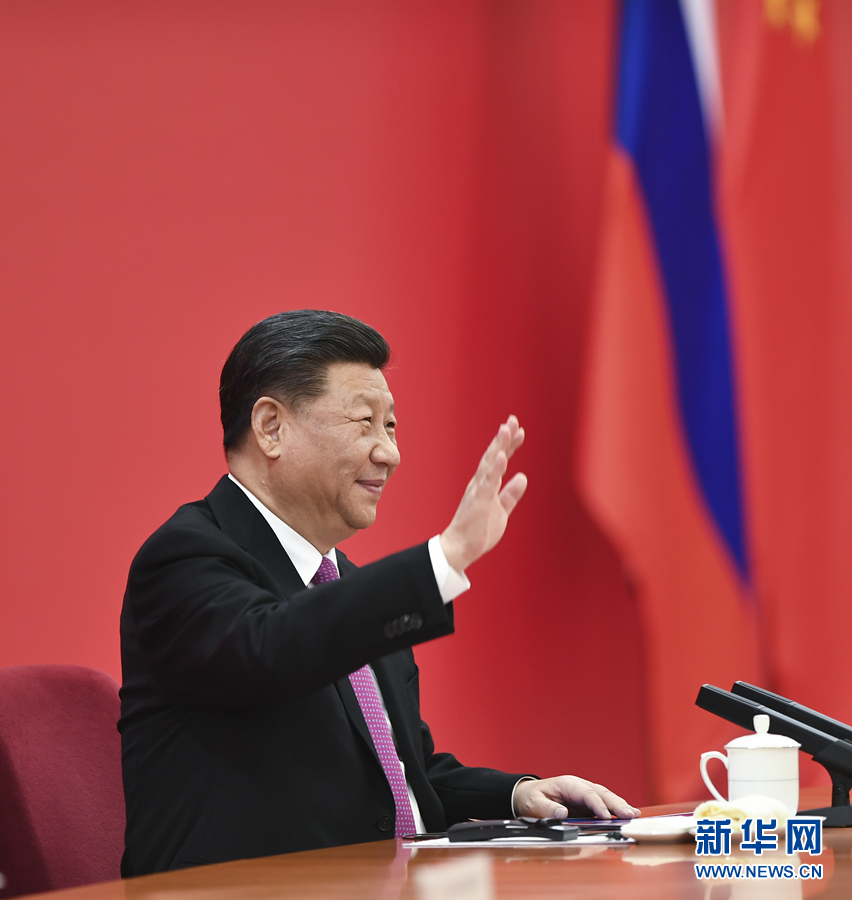 习近平强调,今年是中俄建交70周年,我和普京总统共同宣布发展中俄新时代全面战略协作伙伴关系,一致决定继续将发展中俄关系作为各自外交优先方向,坚定不移深化两国战略协作和各领域合作。当前,中俄两国都处于国家发展的关键时期,中俄关系迈入新时代。希望双方再接再厉,打造更多像东线天然气管道这样的拳头项目,为两国各自发展加油助力,更好造福两国和两国人民。