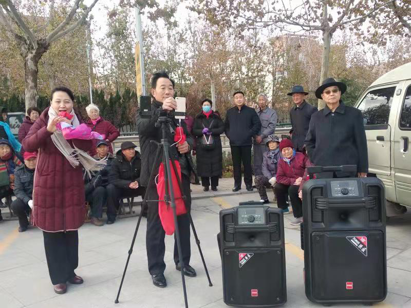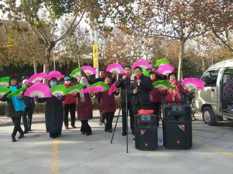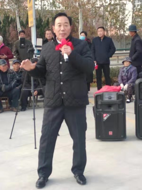 “幸逢盛世千般好,人逢喜事精神爽。近几年,我常常无由头地笑出声,不由自主哼唱起红歌、戏,经典歌。”于希明说,打小就痴迷唱红歌的他,很久不唱歌词都忘了,谁料想如今却像趵突泉的三股水汩汩向外冒。他就买了音箱、话筒、麦克风,边干活边唱,常常引得路人驻足倾听。后来突然有一天,他脑海浮现出一个大胆设想:带上音箱到广场去唱,大声唱,狠劲唱,权当是个懂得感恩的孩子,唱出不懈奋斗的记忆,唱出对党和人民的感恩,唱出对济阳父老乡亲哺育培养扶持自己的感激;权当是一位扶夯叫号手,领唱出对红色基因的传承,领唱出奋斗新时代的干劲,领唱出团结一心促进中华民族伟大复兴的磅薄力量。