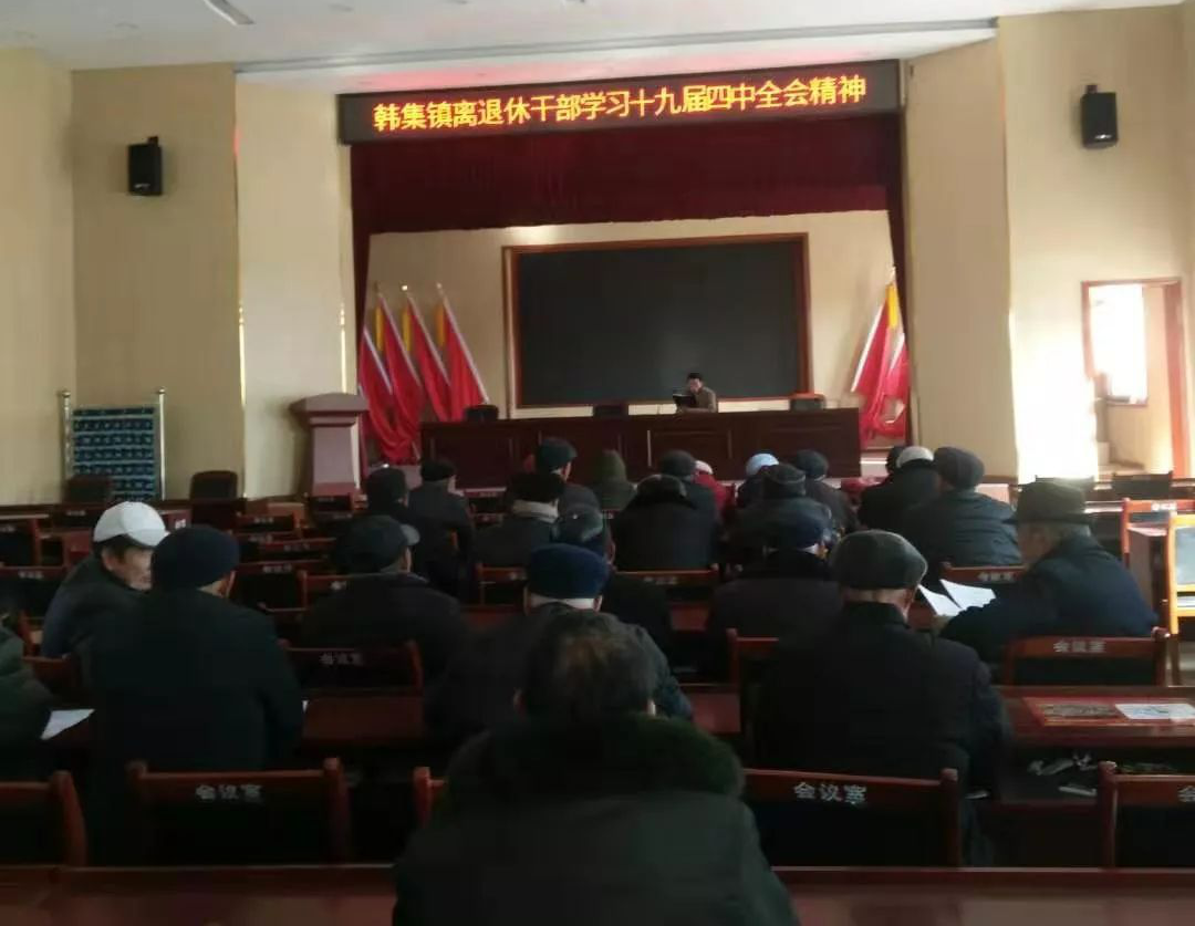 首先,党支部书记高玉红同志带领离退休党员干部集体学习了十九届四中全会精神,指出要深刻领会和贯彻落实会议精神,退休不褪色,共同为推进韩集镇改革发展发挥余热。