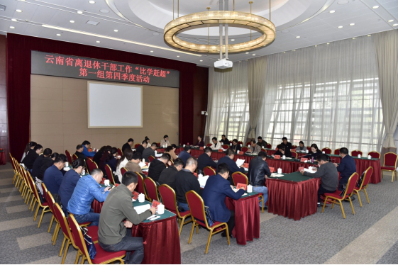 2019年11月26日,全省离退休干部工作“比学赶超”活动第一组第四次研讨活动在昆明举行。本次活动由云南省委老干部局主办,昆明市委老干部局和玉溪市委老干部局承办。云南省离退休干部工作“比学赶超”第一组的昆明、曲靖、玉溪、红河、昭通、文山、普洱、西双版纳等8家成员单位老干部局负责人、昆明14个县(市)区委老干部局负责人共计50余人参加活动。云南省委老干部局巡视员许明星,昆明市委常委、组织部部长刘申寿出席会议并讲话。昆明市委组织部副部长、老干部局局长张玉宁主持活动。