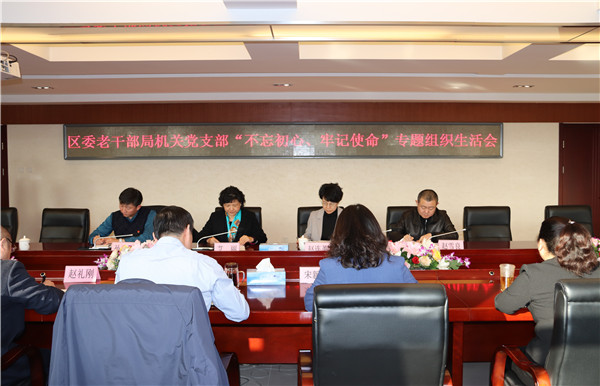 按照区委“不忘初心、牢记使命”主题教育整体部署和《关于认真开好2019年度基层党组织生活会和开展民主评议党员的通知》文件要求,12月9日,北京大兴区委老干部局召开“不忘初心、牢记使命”专题组织生活会。区委组织部部长艾丽同志、区委第二指导组组长赵连英同志,区委组织部办公室主任孙浩同志,区纪委区监委第二联合派驻纪检监察组成员赵雪良同志到会进行指导。区委老干部局机关党支部全体党员参加此次专题组织生活会。