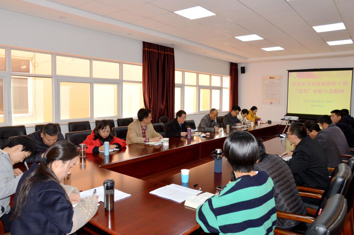 12月16日,全国离退休干部先进集体和先进个人表彰大会在北京召开。中共中央总书记、国家主席、中央军委主席习近平在人民大会堂亲切会见受表彰代表,向他们表示热烈祝贺。云南玉溪市委老干部局及时采取多种方式组织老干部和老干部工作者学习表彰大会精神。