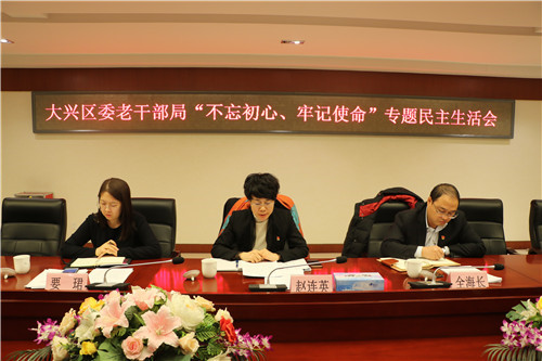 按照区委“不忘初心、牢记使命”主题教育统一部署和要求,12月5日,北京大兴区委老干部局召开处级领导班子“不忘初心、牢记使命”主题教育专题民主生活会。区委第二指导组组长赵连英、组员要珺,区委组织部组织一科科长全海长到会进行指导,区委组织部副部长、老干部局局长侯劲松主持会议并讲话,局领导班子成员参加会议。
