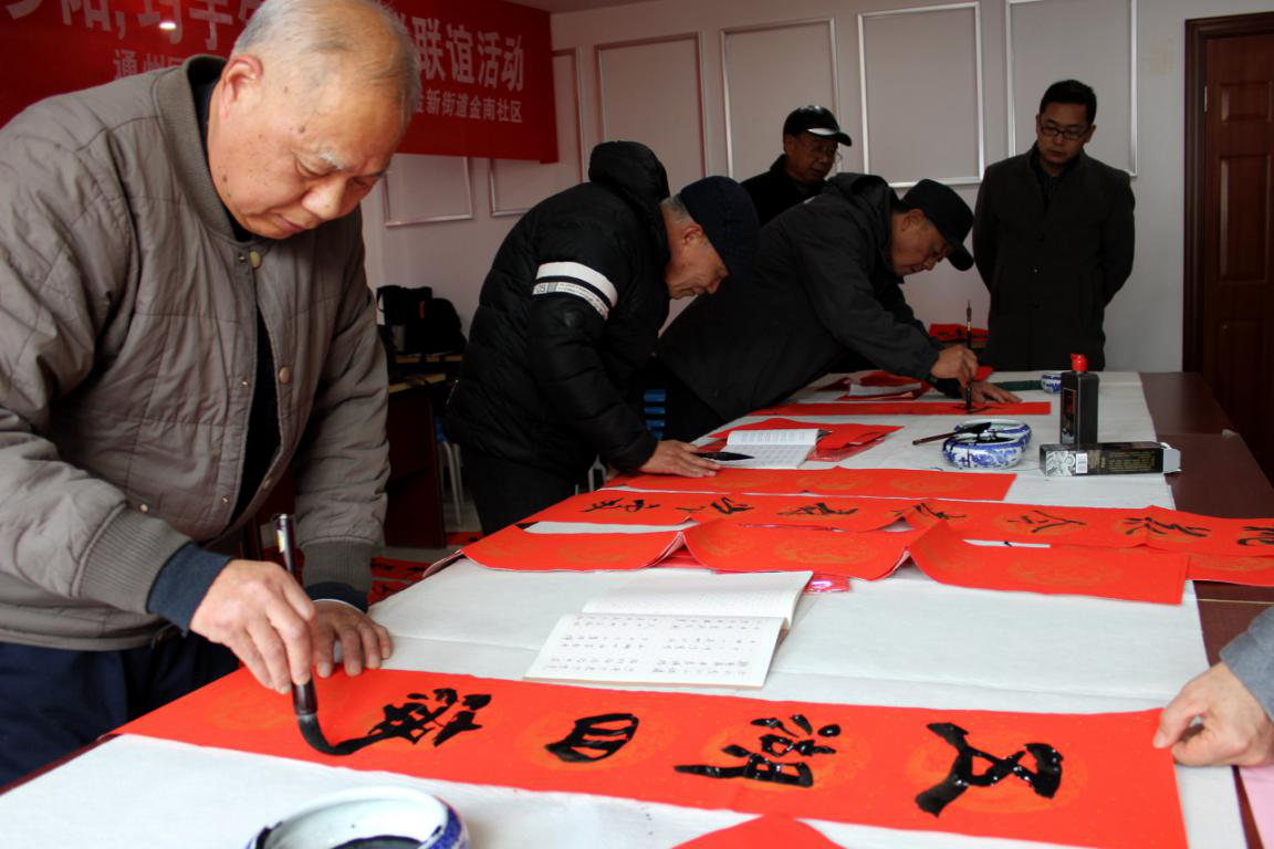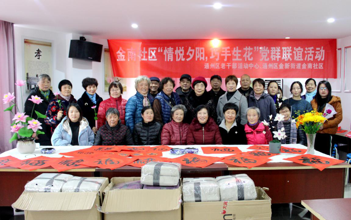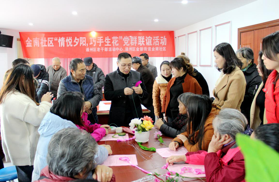 12月13日,“送文化进万家”志愿活动在金新街道金南社区正式启动。通州区“金夕助力”志愿者服务队老干部爱心手工坊分队的志愿者们现场教授、讲解并与60多名群众一起制作丝网花;具有书法、摄影等专长的志愿者们现场书写“福”字和春联40多幅,所有作品全部现场赠送给有需要的家庭,为喜迎元旦营造喜庆氛围。参与活动的市民朋友纷纷表示——“这是自己第一次参与手工制作,很激动”“手工花永不凋零,春节期间和亲朋好友一起欣赏,更能体现我们的生活品味”“这次活动提升了我们的生活质量!”