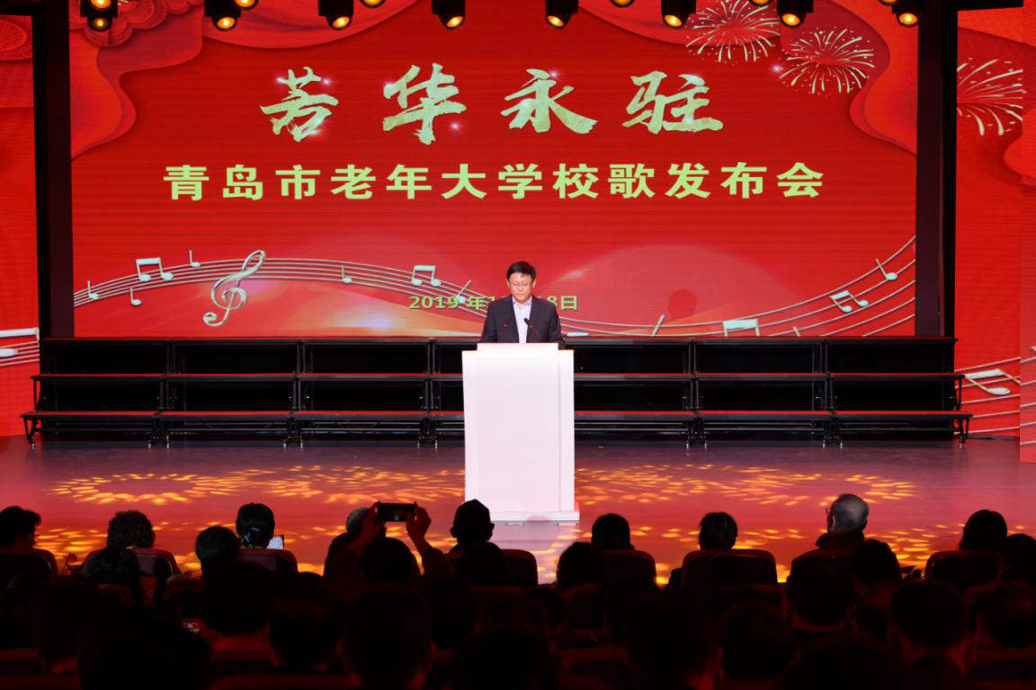 12月18日,青岛市老年大学报告厅里传出阵阵悠扬的歌声,“芳华永驻”青岛市老年大学校歌发布会在这里隆重举行。市人大常委会主任宋远方、副主任张锡君、副主任刘圣珍、秘书长杨鹏鸣,山东老年大学副校长郭锋等领导出席发布会。市委老干部局副局长、市老年大学校长王青海,副校长陈锡来、侯学忠、潘德刚参加了发布会,全校300余名师生代表共同见证了校歌发布并观看演出。