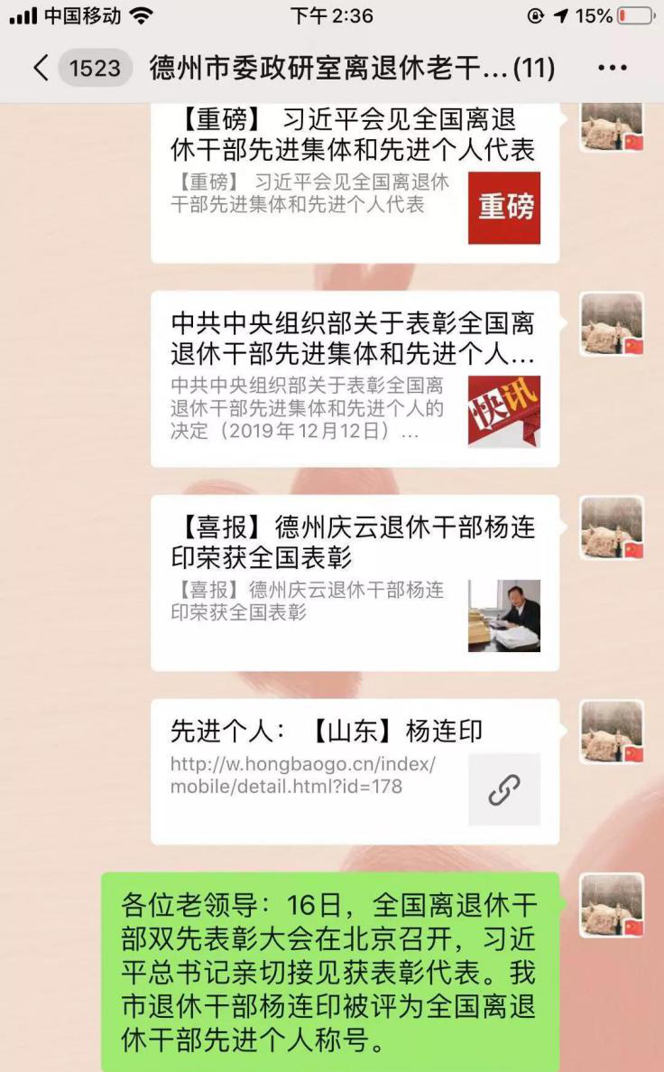 四是广泛开展典型宣传。依托“德州老干部工作”微信公众号、抖音号、头条号等新媒体平台,通过文字、图片、视频、海报等多种形式,大力宣传和弘扬德州市和山东省受表彰先进集体和先进个人事迹,积极组织各级老干部工作者、老干部和社会各界向“双先”致敬。及时联系《齐鲁晚报》《德州日报》、德州广播电视台等媒体跟进报道,有关典型事迹在齐鲁壹点、德州日报、德州晚报、德州24小时、奏嘛手机台等多家报纸和融媒体平台刊发。截至目前,仅市级发布的有关信息在各平台阅读量达到3万人次,其中“德州老干部工作”微信公众号发布的杨连印同志典型事迹,当天单篇阅读量超过2000人次。下一步,还计划组织省、市有关媒体对德州受表彰老同志进行深入采访报道,进一步加大典型宣传力度,努力营造学习老干部、尊重老干部的浓厚氛围。