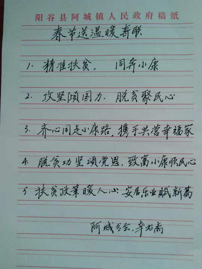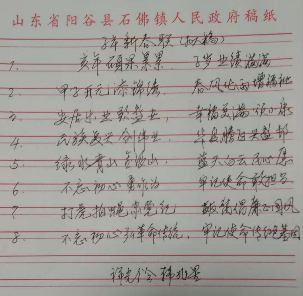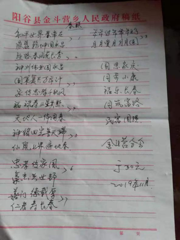 为进一步激发离退休干部爱党爱国热情,近日,聊城阳谷县开展征集“党建春联”活动,面向全县广大离退休干部征集庆祝新中国成立70周年、宣传十九届四中全会精神、“不忘初心、牢记使命”主题教育以及歌颂赞扬党的方针政策路线的春联,各离退休干部党支部组织离退休干部踊跃参与,截至目前已收集到春联120余条,为春节前即将开展的“党建春联进万家”活动奠定了良好基础。