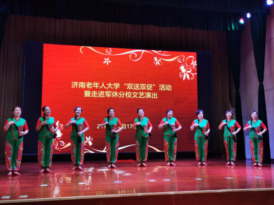 为深入贯彻落实党的十九届四中全会精神,营造浓厚的“双送双促”(送教学、送演出,促交流、促提高)工作氛围,按照“五个走进”活动相关部署,济南老年人大学于2019年12月17日上午,在济南市军休大厦举办济南老年人大学“双送双促”活动暨走进军休分校文艺演出。济南老年人大学副校长李晓钟、济南市退役军人事务局副局长孙宪涛和济南老年人大学军休分校负责同志、学员代表、教师代表以及离退休军队老干部代表等共约200人参加。