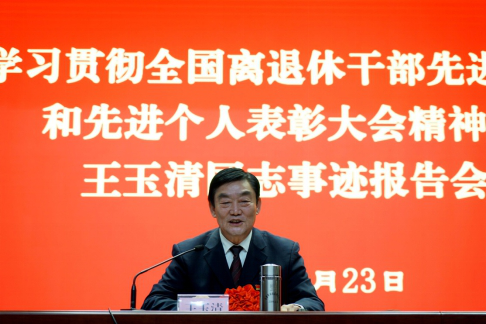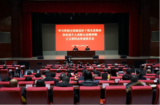 12月16日,全国离退休干部先进集体和先进个人表彰大会在北京人民大会堂隆重举行。东营市河口区民政局原局长、河口街道河宁社区党委第一书记王玉清同志作为先进个人代表参加表彰大会,受到习近平总书记亲切接见。为深入贯彻表彰大会精神、学习宣传王玉清同志先进事迹,12月23日,东营市委老干部局举办学习贯彻全国离退休干部先进集体和先进个人表彰大会精神暨王玉清同志事迹报告会,市直老干部工作联络员、离退休干部党支部书记代表、各县区及市直部门单位老干部工作者代表共150余人参加会议。