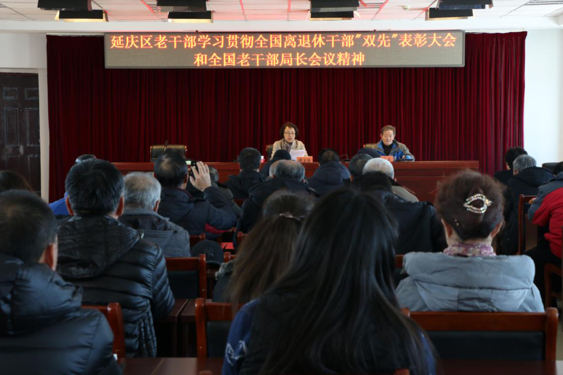 12月19日,北京延庆区委老干部局召开离退休干部大会,学习传达全国离退休干部“双先”表彰大会和全国老干部局长会议精神。区委老干部局全体干部职工及百余位离退休干部参加学习。