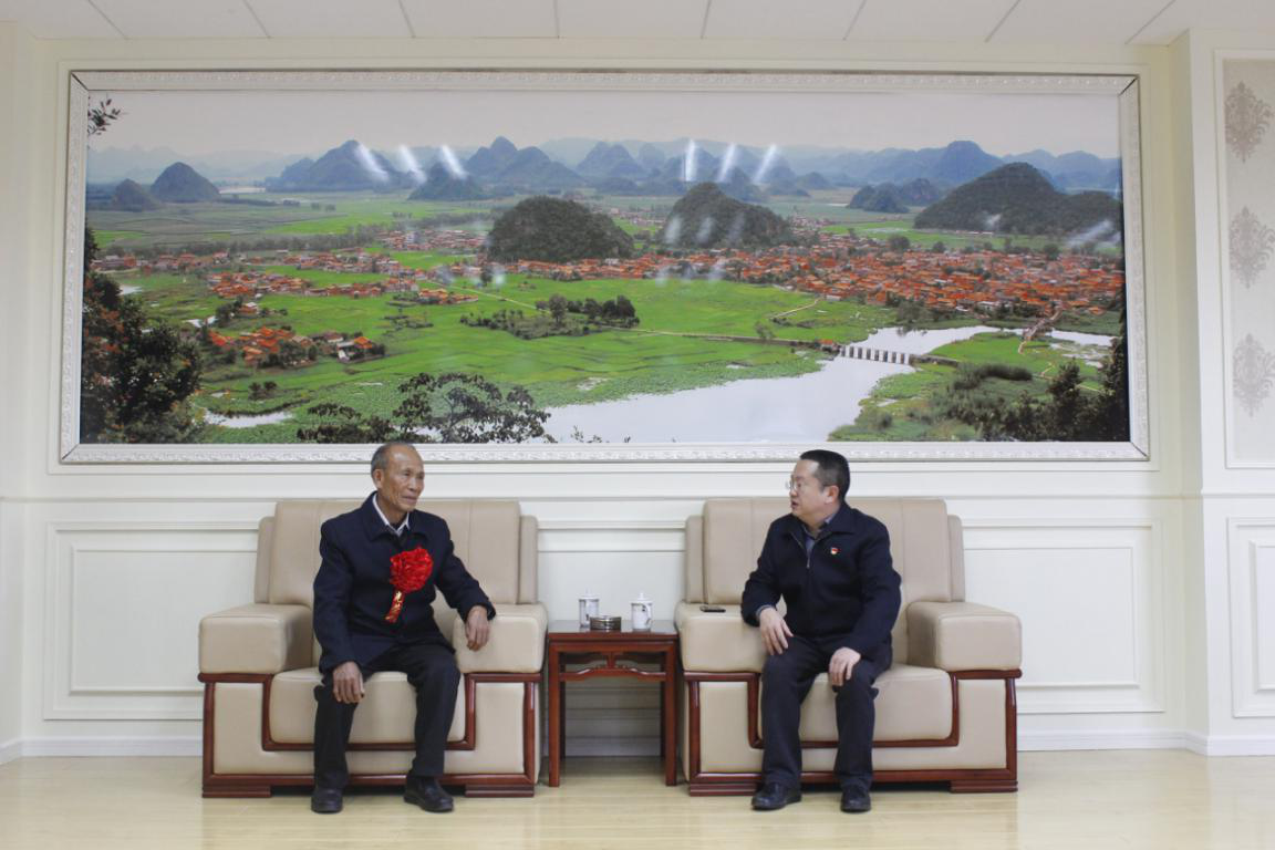 12月18日,中共云南文山州委副书记、州委政法委书记吴长昆,州委常委、州委组织部部长岳宁代表州委、州政府接见2019年全国离退休干部先进个人获得者刘超仁。