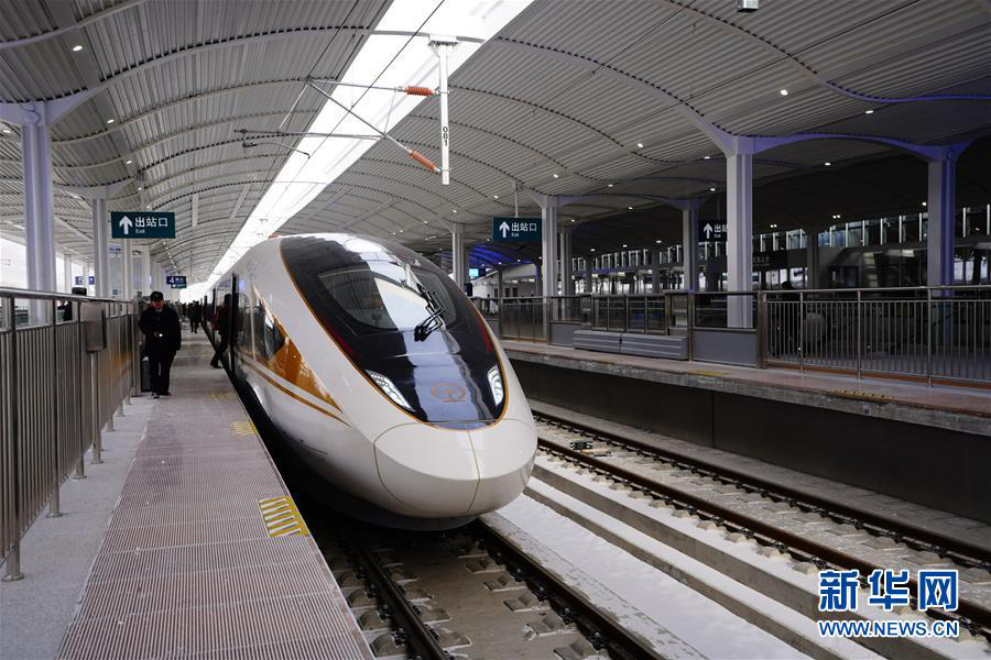 12月30日,G8811次列车停靠在太子城站。新华社记者 邢广利 摄