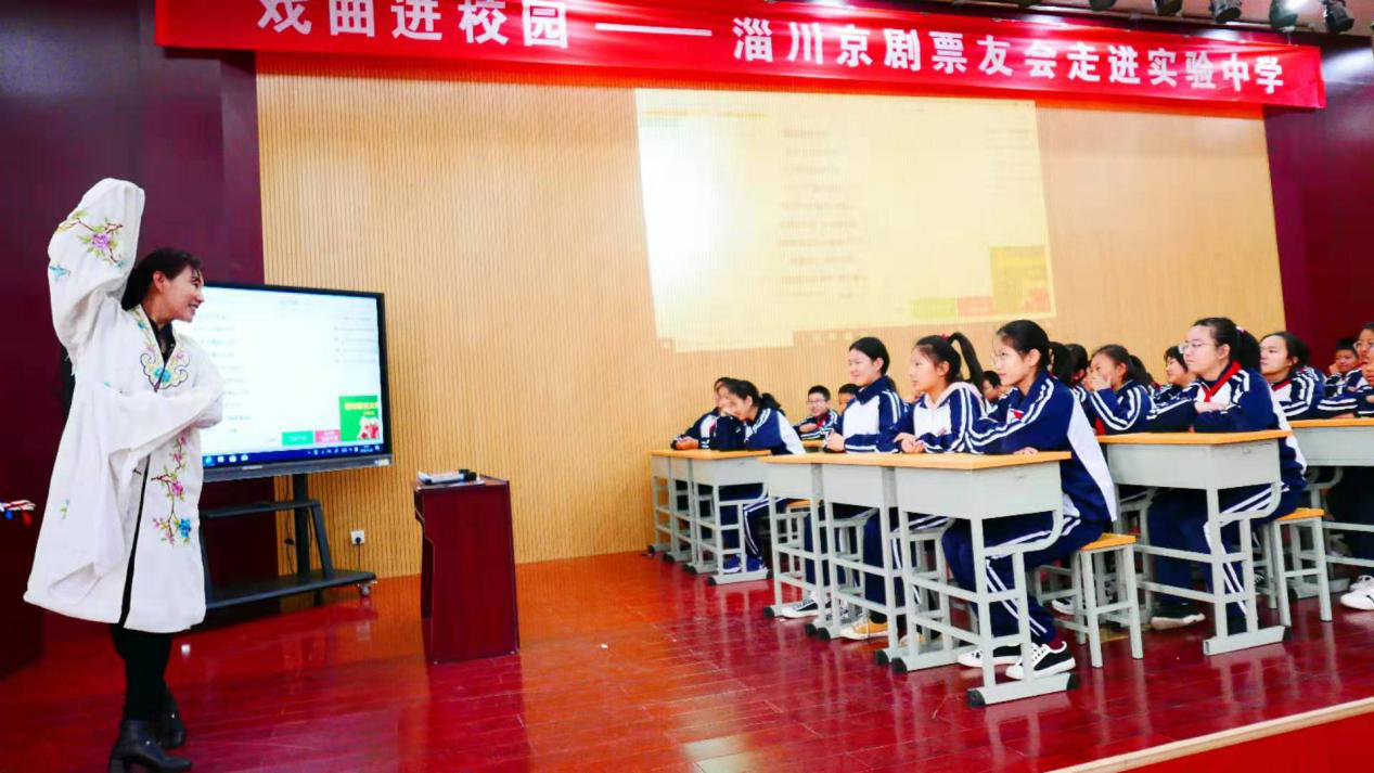 近日,淄博淄川区老年大学京剧团王洪兰团长受邀到区实验中学,开展“戏曲进校园”专题讲座。近两个小时的讲座中,王团长用生动平实的语言、精彩的示范表演及其多年的戏曲表演经验,讲述了京剧的基本概况、京剧行当、京剧吐字发音以及京剧三大性质等知识,令在场师生受益良多。