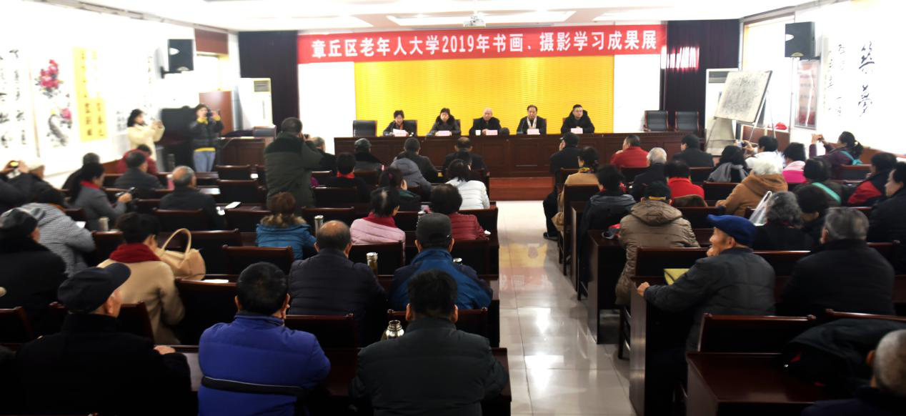 近日,济南章丘区老年人大学在多功能厅举办2019年书画摄影年终学习成果展览。老干部书画院相关领导、书画摄影班教师及老年学员共计100余人参加活动。