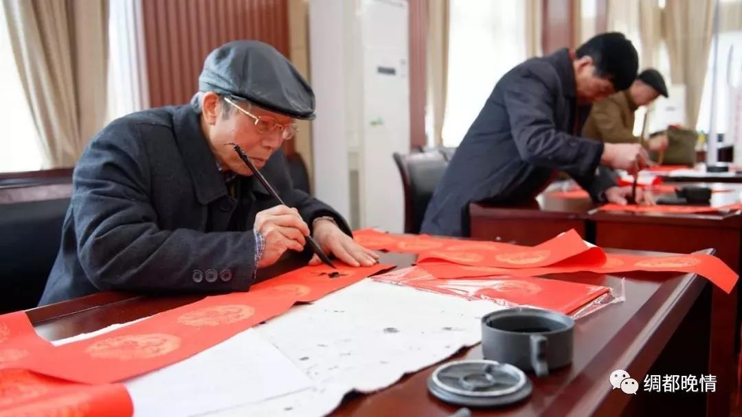 “党恩泽得千家富,红日高升万里春”“当知国梦连家梦,不忘初心树信心”……,场地的另一边,市老年书画研究会的老书画家们挥毫泼墨,把初心和使命与中华传统文化共同融入春联,为大家送上新春祝福。