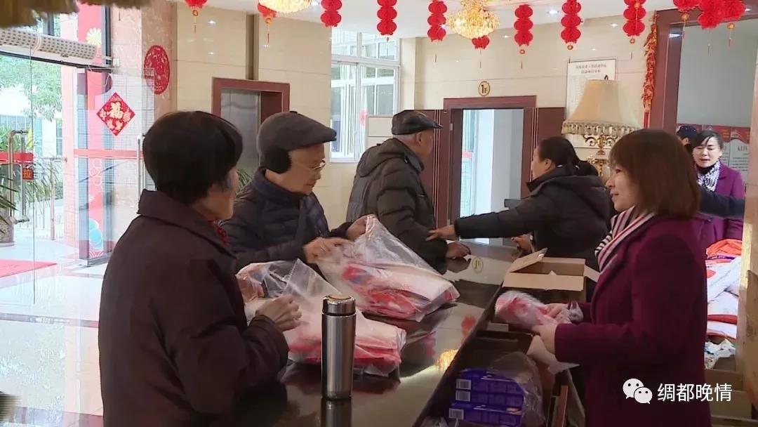 工作人员给老干部赠送春联和福字