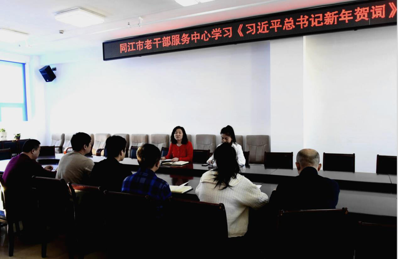 “让我们只争朝夕,不负韶华,共同迎接2020年的到来。”新年前夕,国家主席习近平发表了2020年新年贺词,致敬奋斗者,寄语新征程。1月2日,元旦节后第一个工作日,黑龙江佳木斯同江市老干部服务中心主任王丽艳,组织全体工作人员学习习近平主席2020年新年贺词。