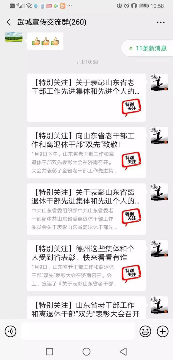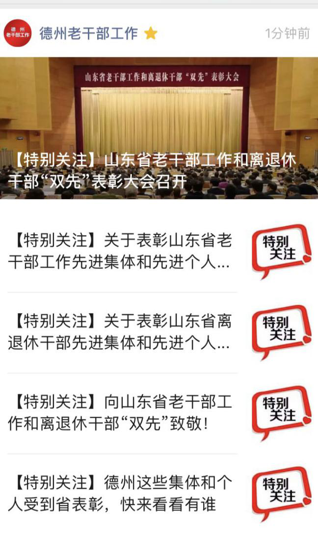 1月10日,全省老干部工作和离退休干部“双先”表彰大会、全省老干部局长会议结束后,德州市委老干部局迅速组织学习贯彻落实会议精神,通过微信公众号、头条号、抖音官方账号等新媒体平台,第一时间发布、转发大会精神、“双先”表彰通报和受表彰先进集体、先进个人典型事迹。组织市委老干部局机关党员干部深入学习领会全国“双先”表彰大会、老干部局长会议精神和省委常委、组织部部长王可,省委组织部副部长、老干部局长、省离退休干部党工委书记杜英杰同志在全省会议上的讲话精神,第一时间编印会议学习资料,做到人手一份、全员覆盖,确保学有所思、学深学透、学有成效。