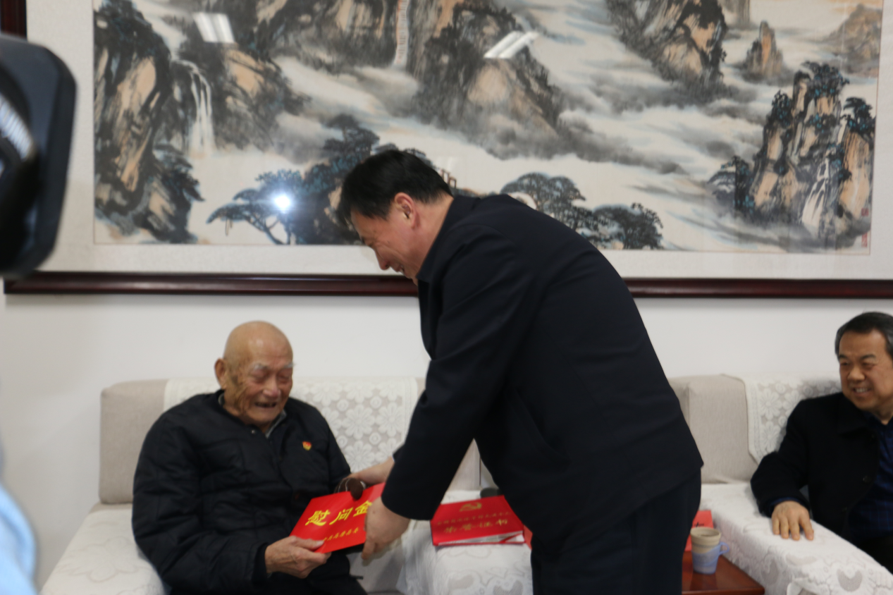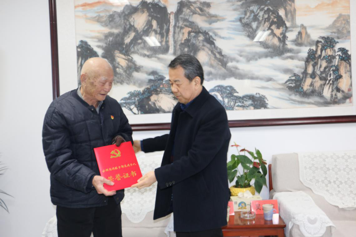 吴广连向刘洪雷发放了中组部颁发的全国离退休干部先进个人荣誉证书,张颖为刘洪雷送上慰问金。吴广连指出,山东省共有16名老干部荣获全国离退休干部先进个人,刘洪雷同志作为我们聊城市的唯一一名离休干部获此殊荣,这不仅是刘老个人的光荣,也是全市离退休干部的大事,下一步将在全市离退休干部和老干部工作者中开展向刘洪雷学习活动,学习刘老不忘初心、担当作为的精神,发挥“传帮带”作用,为聊城各项事业发展贡献力量。
