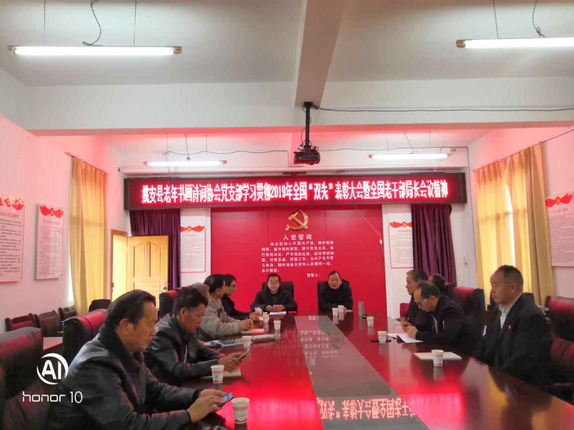 会上,一是专题传达学习全国离退休干部“双先”表彰大会和全国老干部局长会议精神;二是根据近日中宣部等部门和媒体评选开展“2019年宣传推选学雷锋志愿服务‘四个100’先进典型活动”内容,按照 2020年1月3日楚雄州委老干部局发出《关于学习宣传退休干部杨绍才同志志愿服务先进事迹的通知》精神,对参加志愿服务活动20余年、累计服务时间19000余小时,经云南省文明办推荐入选了“最美志愿者”评选的楚雄州农业农村局退休干部杨绍才同志的先进事迹进行了专题学习和宣传。三是参会人员涌跃座谈发言,发言的同志都对全国离退休干部“双先”表彰大会和全国老干部局长会议精神及杨绍才的先进事迹作了很好的学习心得交流,在交流发言中,大部分同志纷纷表示,将结合书画诗词协会的功能和自身特长,向受表彰的先进典型和身边的最美志愿者杨绍才等先进银发老同志学习,并在党支部的引领下,积极参以党支部及协会组织开展的相关志愿活动,积极学习党的路线方针政策,努力学习文墨水平,不断提高书画诗词创作质量,为弘扬与传承中华书画文化瑰宝,为文化姚安的建设发展,奋笔勤耕,挥毫泼墨,创作出更多地讴歌新时代、新生活、新成就的优秀诗词书画作品,积极为党和人民的事业增添正能量。