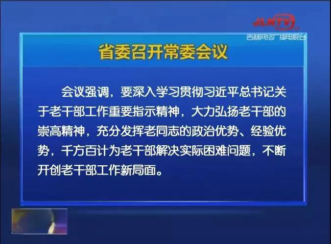 1月8日,吉林省委召开常委会议,传达学习全国离退休干部先进集体和先进个人表彰大会、全国老干部局长会议精神,研究吉林省贯彻落实意见。省委书记巴音朝鲁主持会议并讲话。
