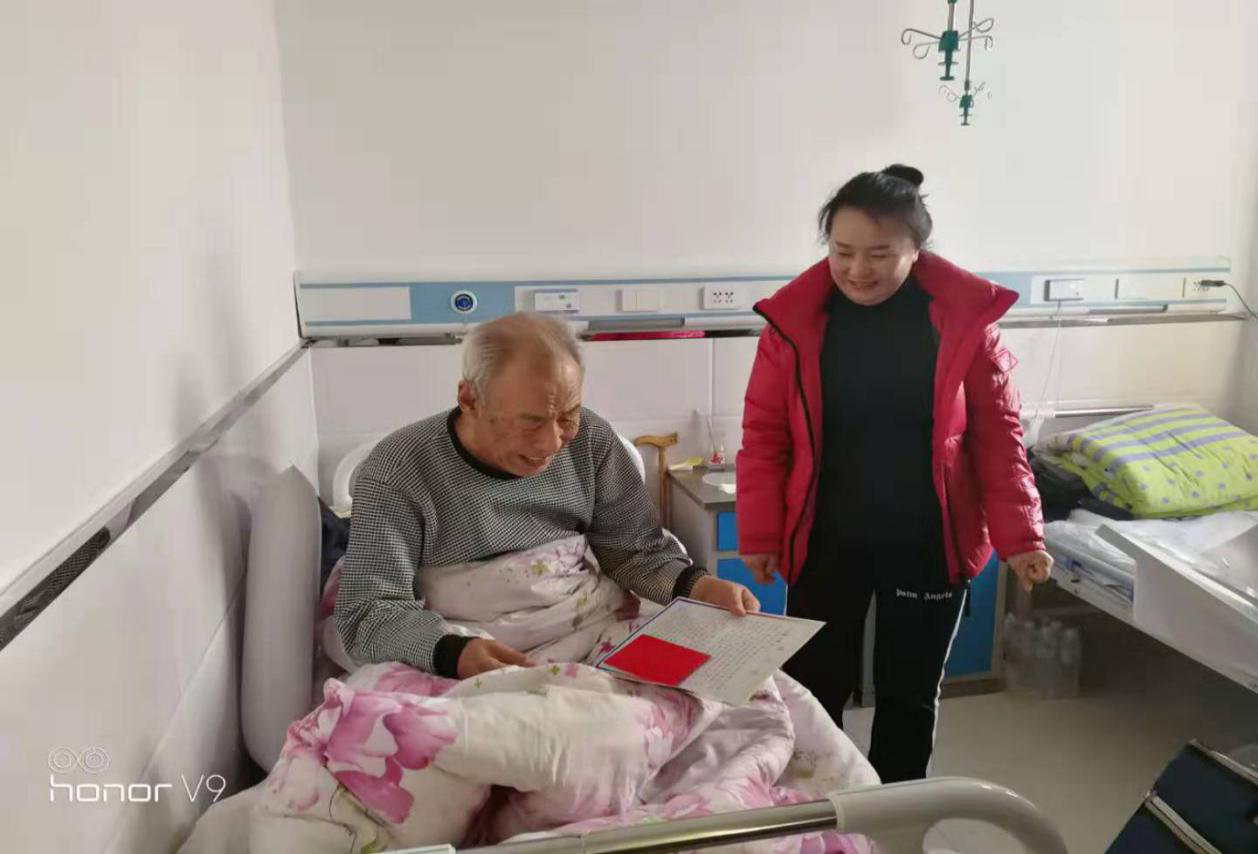 老干部服务中心主任张华同志走访拉哈镇居住离休干部郎俊峰