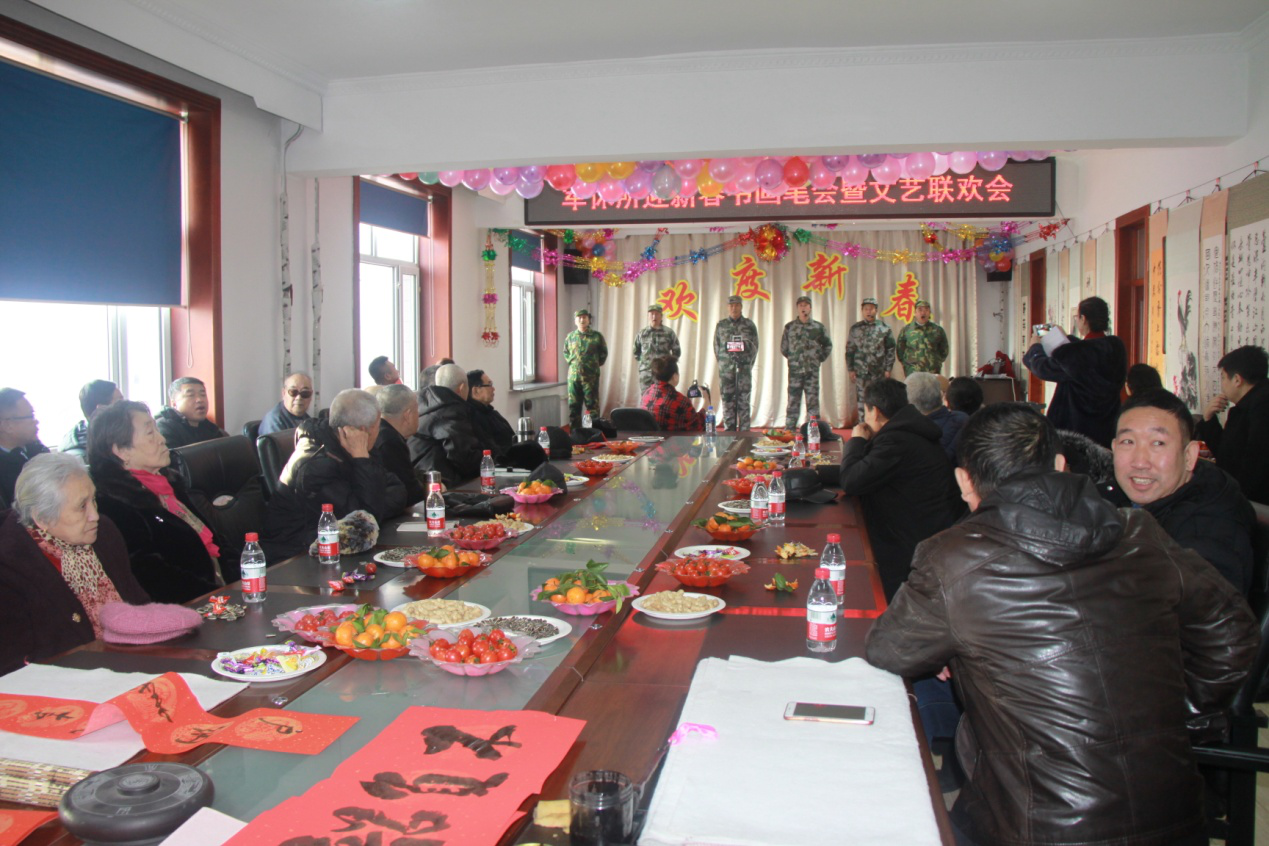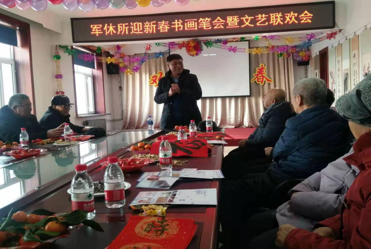 春节前夕,1月16日,黑龙江佳木斯军休所全体工、休人员及家属齐聚一堂,举办迎新春书画笔会暨文艺联欢会。