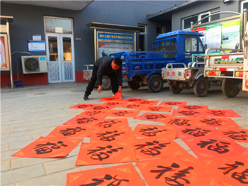 学员们现场创作了近900幅春联、福字赠送给村民,一幅幅满载祝福的作品营造出浓浓的年味,受到村民的热烈欢迎。