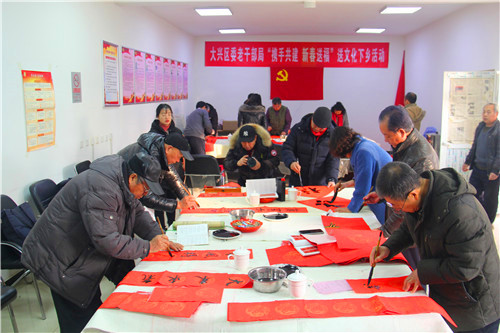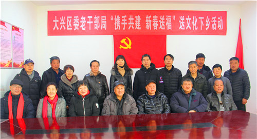 1月15日,北京大兴区委老干部局到双百双千城乡共建村庞各庄镇丁村开展“携手共建 新春送福”送文化下乡活动,区委老干部局副局长宋新影、老干部大学副校长曹永静、老干部大学书法社10余名学员参加了活动。