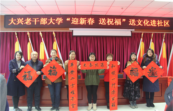 1月8日,北京大兴老干部(老年)大学到高米店街道新时代文明实践站开展“迎新春送祝福”送文化进社区活动,书法社十余名社员参加活动。