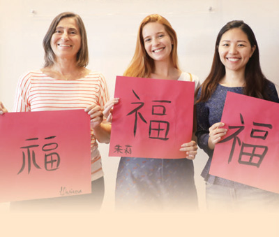 当地时间1月19日,位于巴西里约热内卢的“你好中国”汉语学校里,学员们通过学写“福”字了解中国传统文化。 本报记者 张远南摄