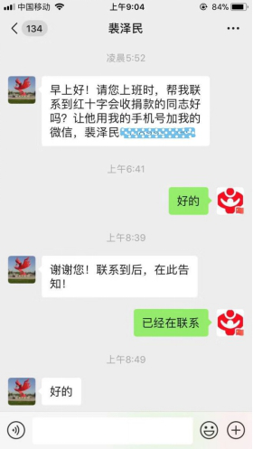“这是裴泽民老人托我来交的爱心捐款,当老人听到县里为疫情捐款的事,今天一大早就通过微信把钱转给了我,请一定收下,希望实现老人的心愿。”利津县关工办主任刘玉霞一边说着,一边将500元现金交到县红十字会工作人员手里。刘玉霞口中的裴泽民,是利津县党史研究中心退休干部,他退休后一直心系社会发展,积极参加公益活动,多次被评为全市优秀五老志愿者、全县离退休干部先进个人。县红十字会工作人员向老人电话致谢时,裴泽民说:“我年纪大了,也出不了什么力,但是人民有需要,作为党员,我也要尽一份微薄之力,这一点心意,希望能够助力疫情防控工作!”