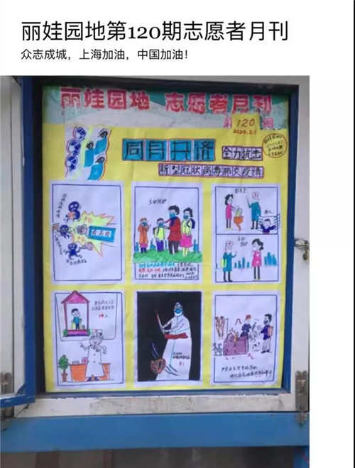 原上海工程技术大学纺织系主任、副教授,退休党支部委员,现任长风新村街道普老桑榆讲坛宣讲员,师大一村丽娃志愿者团队负责人曹丽纳在疫情期间发动丽娃志愿者团队的老党员,从网络和报刊资料中选取疫情相关的科普内容,以充满趣味的卡通绘画方式将内容“转译”出来,发布在小区的宣传栏中,帮助大家了解疫情,知晓如何自我防护,用自己的才艺能力助力社区抗疫!