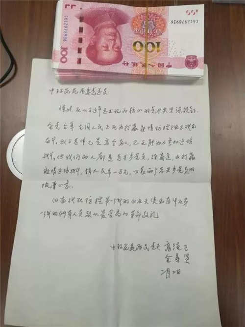 “我与老伴已是高龄老人,已无能为力参加这场战斗,但我们两人都是老共产党员,经商定,为打赢疫情这场战斗,捐人民币一万元,以表两个老共产党员的微薄心意。向奋战在防控第一线的白衣天使和奋斗在第一线的所有人员致以最崇高的革命敬礼。”