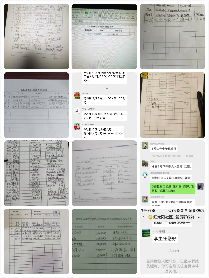 全局党员干部积极响应局对全体党员在防范疫情工作中勇当先锋的号召,亮身份、争先锋、做表率,主动取消春节假期,迅速到各自居住地所在的社区报到,主动完成志愿服务登记,积极承担社区“大党委”分配的社区疫情防控任务,配合社区做好值班值守、防疫消毒、检测登记、防疫宣传等疫情防控工作,引导社区群众正确理解、积极配合、有序参与疫情防控,用实际行动严格落实习近平总书记“要让党旗在防控疫情斗争第一线高高飘扬”的重要指示精神。